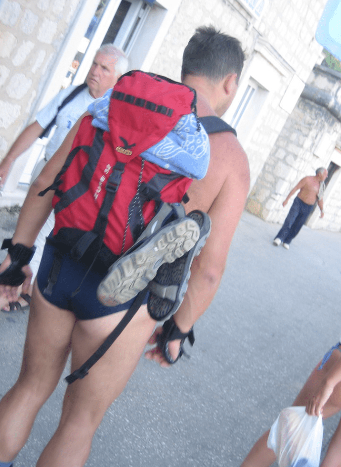 The Adriatic sparkles. The sun hits hard. And the men here never abandoned tight swimwear. Speedos are not ironic. They are tradition.